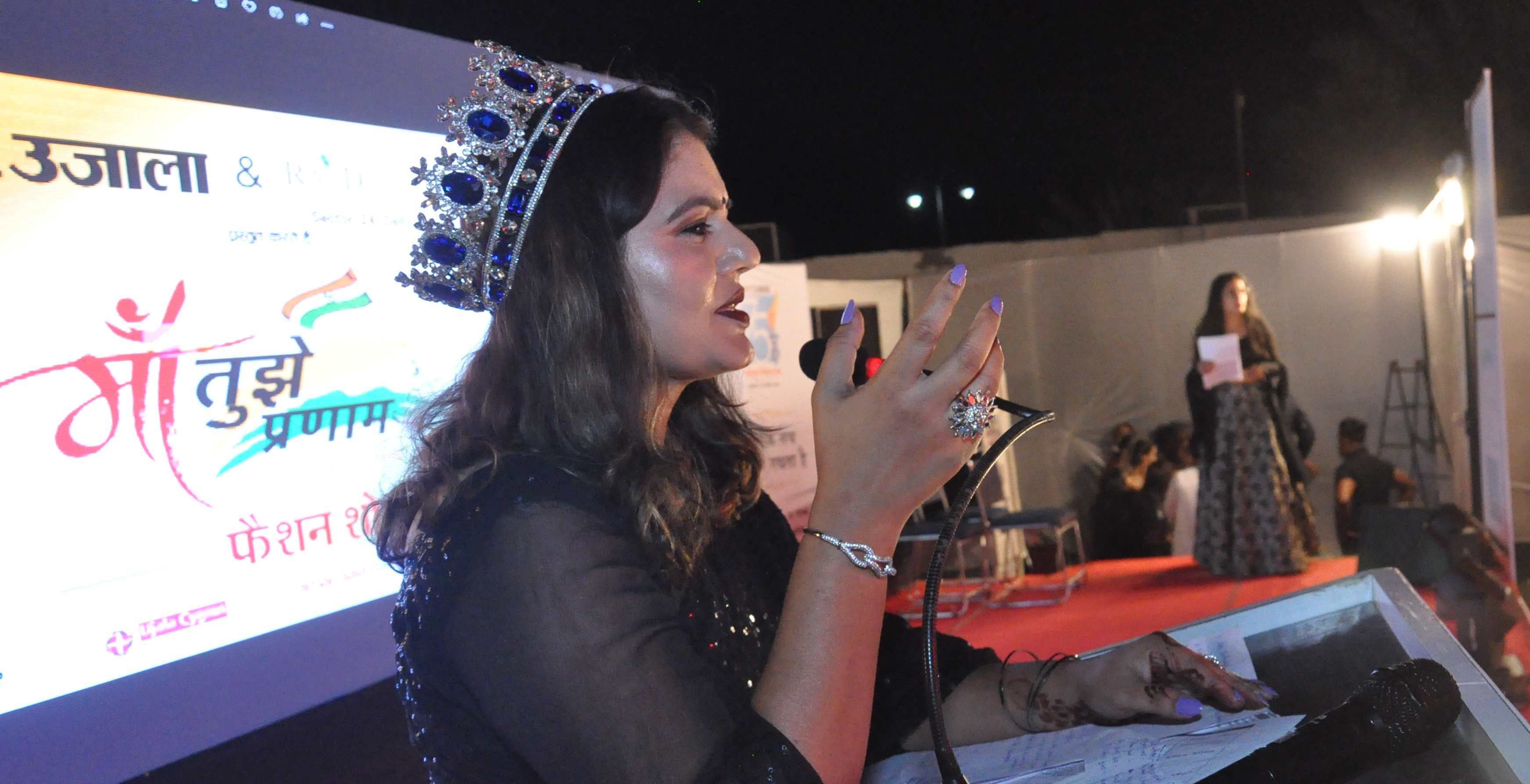 मंच से संबोधित करती मिस हरियाणा पूजा।