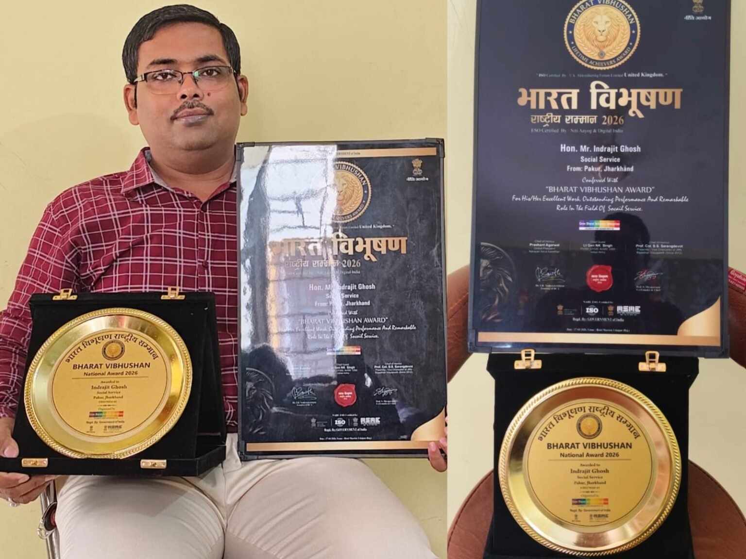 पाकुड़, झारखंड, 27 मार्च 2026 : Bharat Vibhushan National Award 2026 के अंतर्गत पाकुड़ निवासी समाजसेवी Dr. Indrajit Ghosh को Udaipur, Rajasthan में आयोजित समारोह में Lifetime Achievers Award प्रदान किया गया।