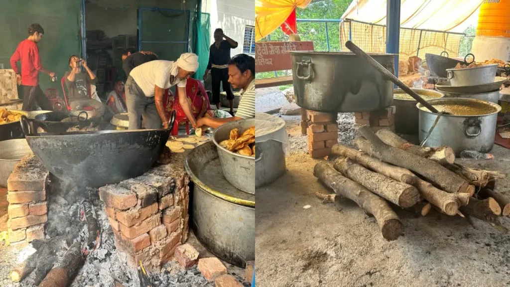 गैस चूल्हों की जगह लकड़ी पर बना प्रसाद